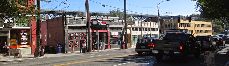 The street scene across from Roxy's. I show this because of how normal it looks. But, over there, across the street, are tattoo shops and other, eclectic businesses. It's Freaky Fremont, Dude!!