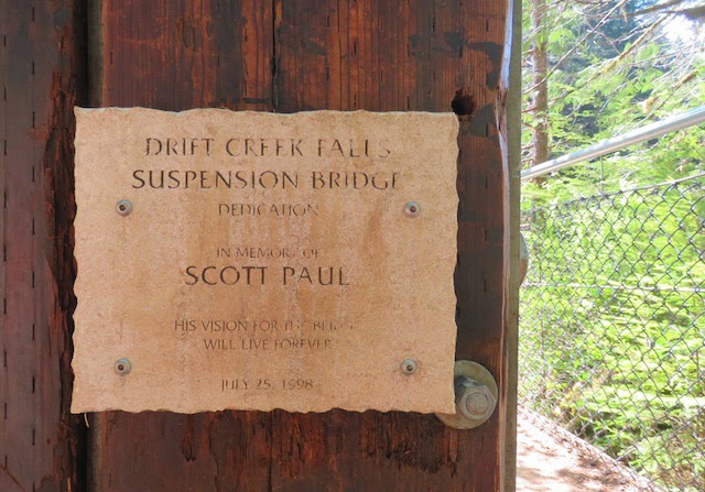 More Fun Facts: The bridge is dedicated to the late Scott Paul, a trail builder with the National Forest Service. Mr. Paul was the construction foreman on the early Forest Service portion of the construction. He died in a tragic rigging accident during construction.